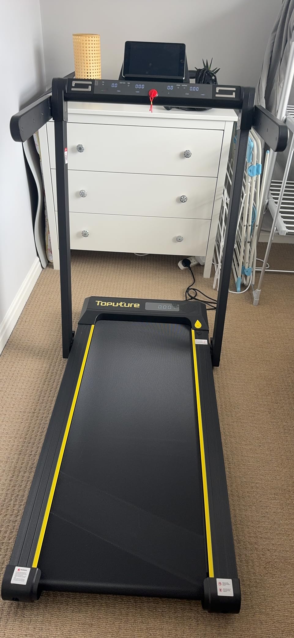 Customer Reviews Em****. Em****.We are super happy with our purchase. It’s easy to use, portable and super sturdy. This has been a great kick start to getting fit & healthy, we have used it everyday since it arrived. If your thinking about purchasing, your definitely should!  A***ha A***haThe Topture treadmill has truly changed my exercise routine. The Bluetooth speaker adds a fun element to my sessions, allowing me to enjoy my favorite music while I work up a sweat. I was impressed with the speed capabilities of the treadmill. Additionally, convenient oil entry points ensure easy maintenance, keeping the treadmill in top condition. Overall, I highly recommend the Topture treadmill to anyone looking for a high-quality exercise machine.    Nig*******ence Nig*******enceA few months back I had heart surgery so wanted something I could exercise with at home sensibly and this treadmill is perfect. Not too big,heavy or cumbersome (unlike many). Once out the box and powered up it’s ready to use - Runs really quietly and I love the internal Bluetooth speaker. Also unlike many treadmills the deck/belt lubrication method is really simple with the built in reservoir so no haphazard squirting of oil underneath the belt. Good range of speeds available (from the treadmill control panel or the handy small remote control) from a slow gentle walk to a rapid 16 km/h. In summary, this treadmill is great for my needs and along with the 2 year warranty it’s great value so it comes highly recommended- - all in all, very chuffed !!!  cate********igo cate********igoGood price, packed and shipped well. This is exactly what I wanted, product works really well as advertised, happy with my purchase.  Lor*******keUp Lor*******keUpWorked perfectly on the first try. Would recommend this! Super great for working from home. Time will tell if it holds up, but very pleased for now.  Mis******nd Mis******ndThis treadmill is fully featured and perfect for home use. It allows for exercising while working or doing other tasks. Its ultra-thin design and quiet operation make it very convenient for home use. It's easy to store and can be used without opening the handrails. The wireless remote control function also adds to its convenience. Overall, this treadmill offers many attractive features and is suitable for home fitness.  Dr****n Dr****nThis treadmill surpassed expectations with its quick 5-minute installation, compatibility with the FitShow app, and versatile workout options. Its comfortable, low-impact design and intuitive controls make it perfect for home fitness routines. Additionally, the team's support in setting up the warranty has been excellent, enhancing the overall experience.    Gem******ker Gem******kerThis treadmill is amazing, no only is it smaller and perfect in the space we wanted it but it’s very sturdy! I have completed multiple runs and walks on this since I received in 4 days ago!Shipment was very quick and the seller has been amazing. You get 2 years warranty with it also! Great for increasing my steps!      Ian******ey Ian******eyExcellent product. Not too bulky but solid made and looks expensive. Speed settings good enough to sprint and run fast aswell as walking if you’d prefer. Folds away do discreetly when not in use. Almost silent when switched on. I am so happy with this purchase, here’s to getting Fit!! Totally recommend    M**k M**kThe build quality is very good and the delivery is well packaged. This machine allows you to raise your arms or lay them flat to work while you exercise. When using the arms, they feel very sturdy and I don't have any loose feeling like other machines. I've progressed from a slow walk to a brisk walk with increased speed via remote control or manually. Being able to place a small tablet or phone on the top bar attachment allows me to listen to music while keeping my hands free. Honestly this is a great machine, feels well made, makes it easy to add oil from the top without having to move the belt, allowing you to walk or run on a variety of programs. Would I recommend this treadmill? Yes, I am very happy with this purchase.