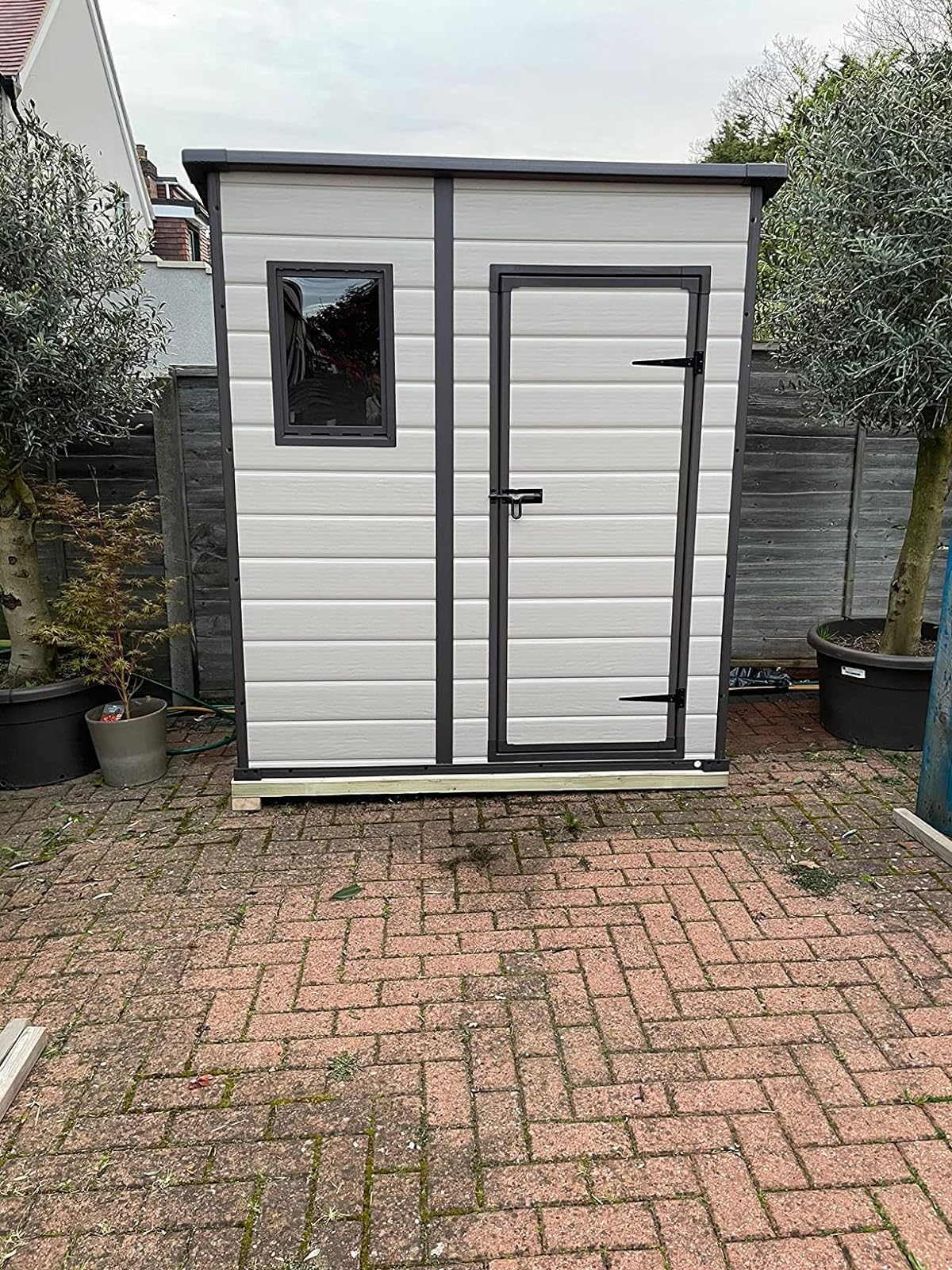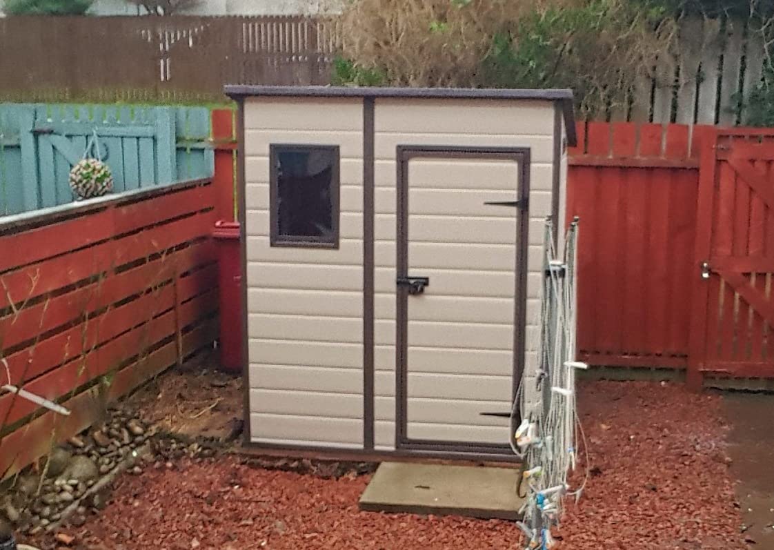 Customer Reviews R**h R**hOn opening the box, initially, the pieces seem flimsy. The strength however comes from the way it's assembled, once complete it's as strong as a timber or metal shed. Do note that it needs to be placed on a level floor, we constructed one from timber and it's perfect. The shed itself took a couple of hours to construct. If I had to do it again, would probably take an hour. The window frame did arrive warped but with some gentle persuasion and the gentle help of a hair dryer, it straightened out fine.      Amaz********mer Amaz********merFirst up this seller was the cheapest in the UK for this shed, every where else was sold out. it took me 1hour and 50 mins to build and every part is labeled and the labels peel off easy. you needs a power drill with good Philips screw driver bits as if by hand you will not last 20 mins. YOU must have a solid base. I had a cement base and its vital for a good build. I replaced this due to my old wooden shed being rotted. Argos sold this but it was never in stock but this seller had it on the best offer. highly recommended. and the roof is tricky to put o but im 6f 6i tall so no hassle for me. Glad i never tried to get this in my car. even an estate would struggle. I also ground bolted this using concrete bolts. drill the holes then screw in the bolts in each corner, that night we had gale force winds in Glasgow and the shed took a heavy battering and NO damage at all its very strong once built, don't forget a paddock for the lock. best garden item i have ever bought.    F***b F***bThis is our 2nd keter shed. They are great - stay clean and simple to maintain. 2 people needed to assemble. Instructions are good but the roof is really tricky to get in place but it can be done with patience.  S. ******th S. ******thClear concise instructions, this is definitely a 2 man job but not beyond a competent DIY'er. Trickiest part as others have said is putting the roof on but the handy included spatula is a godsend. Complete assembly from unpacking to storing garden equipment took myself and my son 4 and a half hours. I would thoroughly recommend this shed.    *G *GQuite difficult to put together, needs two people but once set up pleased with it  jud******er jud******erLooks good, great for garden storage  Eliz*********herty Eliz*********hertyIt is water-resistant, plenty of room for storage ,looks good ,happy with purchase Very easy to erect Love it 😀  Miss ***********llier Miss ***********llierI have a few Keter storage sheds in varying size. They are really robust. The negative side of this product is getting the roof on was super difficult. Also the holes are not pre drilled. This makes starting a screw hole is really difficult, I do have very weak wrists so I’d recommend using a tiny drill bit to give you a head start. Another thing to note, the area where we assembled this was super flat however unbeknown to me it was a couple of ml out. This impacted massively. I did have a few gaps around Where the floor joins are which I’ll sort with a bit of guttering silicone run Round the edge.  Wo****9 Wo****9For a decent shed these days you need to spend a grand or more, so for 335 quid, I wasn’t expecting much. I was pleasantly surprised though, once I’d put the thing together. It was reasonably sturdy and completely weatherproof although the floor was a bit Bendy. The supplied floor just isn’t very good on its own and definitely needs a solid layer of wood over the top of it. I had some spare click-flooring, although a sheet of plywood would work just as well, so I placed that down on the floor and the shed became completely functional and practical. I only needed it to store some junk from my other shed, so I installed some freestanding plastic racking and loaded it up. The weight of all the stuff has made this shed completely solid and it looks like it would stand up quite well to Gail force winds. Empty, the shed is very light and easy to move around and reposition, but loaded up with items, it’s as solid as a Rock. The weight of the items press directly down onto the shed floor and that is what pins it into place, hence I strongly recommend laying down a sheet of plywood or other solid floor material to help spread the weight. It was reasonably straightforward to assemble, although it did take half a day. The instructions were relatively simple to understand although some bits could have done with a more in-depth explanation or larger expansion of drawings. One thing to note, the top of the doorway is pretty low and lined with a metal surround and I kept banging my head on it, when loading it up, and it really hurt! I would conclude that this shed is ideal for storage, because the weight of the stored items would weigh it down and hold it in place, but it probably wouldn’t be much use if you were looking to use it mostly empty as something like a potting shed; without anything weighing it down, it probably would stand up in gales.  Mon******bri Mon******briGreat product, nice look and very easy to put it together. Not as large inside and have to bend head to enter depending how tall you are, but sizes are true to those as advertised so no disappointment