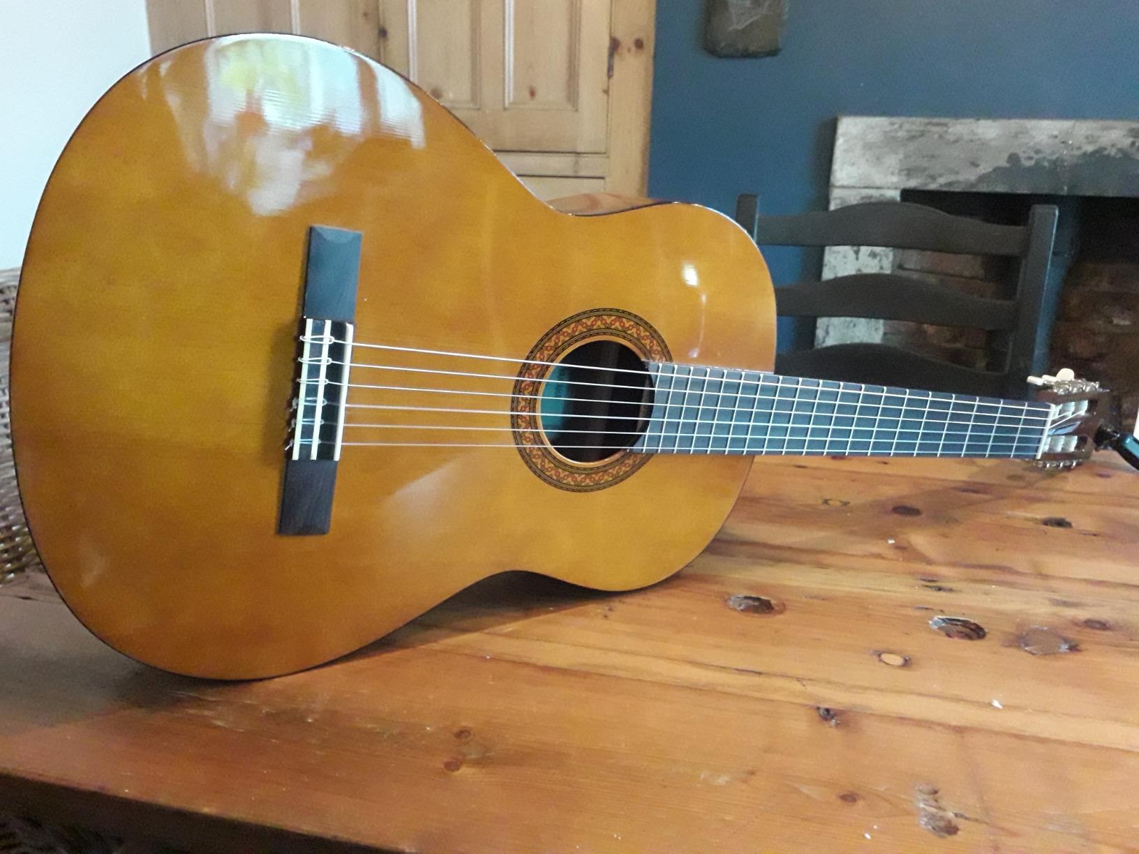 After spending a few weeks researching the best options for a quality classical guitar at an affordable price, I decided to buy a Yamaha C40! I read many, many reviews and watched many Youtube reviews from experts and musicians and overall they had very good things to say about the C40 and I ended up choosing the Yamaha C40! When I opened the package I was really excited to see the guitar! Looks good, the overall feel of the body is great! They come with 6 nylon strings and are ready to be tuned and played! To tune the guitar, I used Guitar Tuna, a free app from the Google Play store that automatically detects the strings being played and makes a sound, another reason to come back is because it's black, the color The surface is glossy and it will let you see every fingerprint on your guitar! as a beautiful guitar